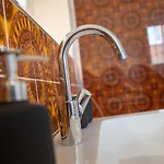 Diese Unterkunft in Garding verfügt über ein Badezimmer mit einem Bidet, einem Waschbecken und einer Dusche. Ein Haartrockner, ein Wäschetrockner und Handtücher stehen auch zu Ihrer Verfügung.